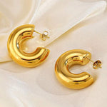 Brincos Sara – ousadia e elegância em perfeita harmonia. Estas argolas volumosas, banhadas a ouro 14K e resistentes à água, apresentam um design marcante e contemporâneo que transforma qualquer look. Ideais para quem procura um toque moderno aliado à sofisticação intemporal.