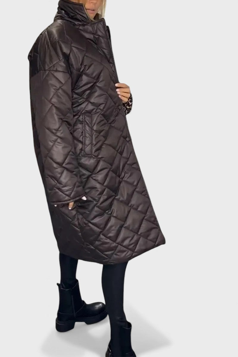 O Clara - Casaco Reversível Acolchoado é a escolha perfeita para quem quer enfrentar o frio com elegância e atitude. Com um design moderno, detalhes texturizados e um corte longo que alonga a silhueta, este casaco transforma qualquer outfit num look marcante, confortável e cheio de confiança.