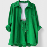 O Teresa – Conjunto Casual de Estilo Moderno foi criado para mulheres que valorizam peças práticas, elegantes e perfeitas para um estilo descontraído. A camisa fluida combinada com os calções de cintura ajustável cria um look harmonioso, confortável e cheio de personalidade.