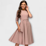 Com uma silhueta lisonjeira e cinto que define a cintura, este vestido é ideal para festas ou para o dia a dia.