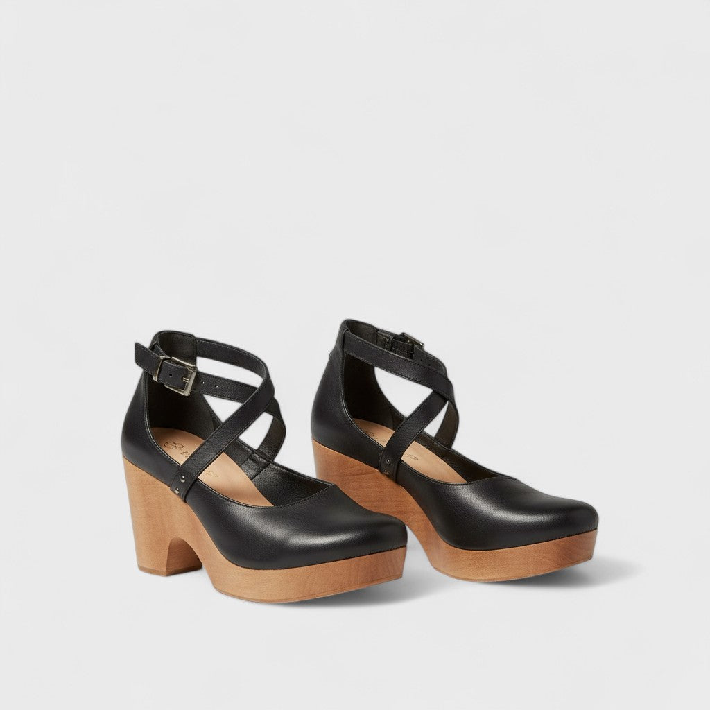 Ganhe elegância e conforto com estes sapatos de salto plataforma. A tira cruzada ajustável garante segurança, enquanto a palmilha anatómica oferece suporte durante todo o dia.