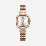 Este modelo combina tons quentes de bronze com uma caixa de design subtil e uma bracelete em couro mate. Perfeito para quem procura um acessório clássico com um toque único e moderno.