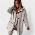 • Detalhes Modernos que Elevam o Look – Botões destacados, capuz funcional e textura tricotada que cria um visual atual, elegante e irresistível.