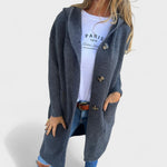 Valentina – Casaco Elegante é perfeito para quem procura um visual descontraído mas sofisticado. O seu corte longo, textura aconchegante e detalhes minimalistas tornam-no ideal para looks práticos, femininos e sempre com charme — seja para uma saída casual ou um dia mais ocupado.